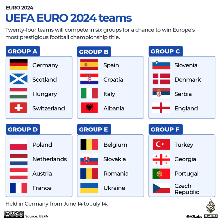 한 달간 진행되는 챔피언십은 6월 14일 뮌헨 축구 아레나에서 개최국 독일과 스코틀랜드의 경기로 시작됩니다.