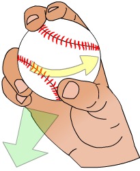 - 직구를 던질 때와 같은 투구 자세를 유지하되, 공을 잡을 때 실밥을 잘 활용해야 합니다. 공의 실밥에 두 손가락(검지와 중지)을 걸쳐 안정적인 그립을 유지합니다.